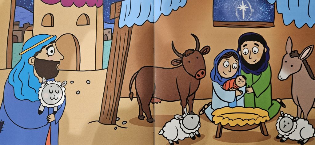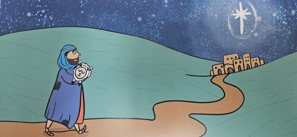 The secret policemen entered the stable unnoticed, still carrying his sheep, looking amazed. It was not a place you’d expect to find a prince. It was dark and smelly and there were animals there. But as the Secret Policeman looked at the mother, the father and the baby in the manger, he had the strangest feeling.