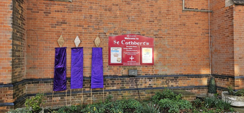 Our Candles are out the front of St Cuthbert’s Come and see them. There are four candles to represent